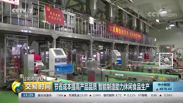 這條生產(chǎn)線是企業(yè)自主開發(fā),瓜子全自動(dòng)流水線,自動(dòng)包裝、運(yùn)輸、裝箱一體化,工藝控制實(shí)現(xiàn)全流程自動(dòng)控制以及遠(yuǎn)程監(jiān)控。這樣,不僅讓效率得到提升,讓企業(yè)的生產(chǎn)標(biāo)準(zhǔn)也得到精準(zhǔn)的執(zhí)行。像這樣的生產(chǎn)線,以前企業(yè)需要用200多人,現(xiàn)在只需要20人。一年節(jié)約人工成本超過1000萬元以上。