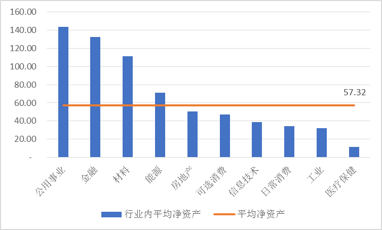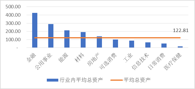 圖2-3 2018年安徽各行業(yè)A股上市公司平均總資產(chǎn)情況
