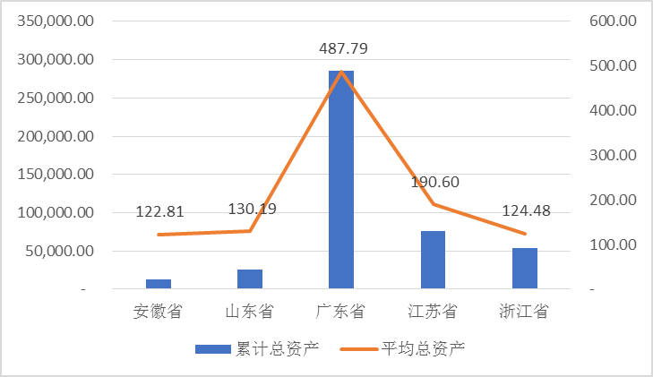 截止2018年底,安徽上市公司累計(jì)總資產(chǎn)為12,649.57億元,與之相比,同期廣東省上市公司累計(jì)總資產(chǎn)達(dá)285,847.38億元;山東省為25,125.79億元;江蘇省為76,240.59億元;浙江省為53,650.98億元,安徽上市公司的總規(guī)模相對較小。