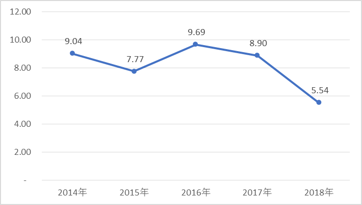圖2-19 安徽上市公司平均凈資產(chǎn)收益率變化(2014年—2018年)