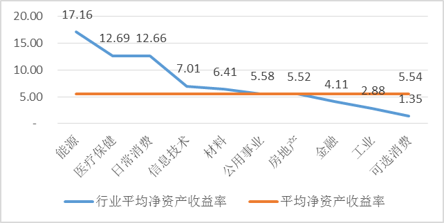 圖2-21 2018年安徽上市公司各行業(yè)凈資產(chǎn)收益率