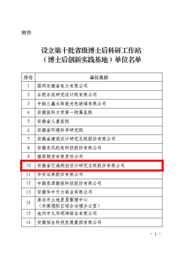 日前,安徽省人力資源和社會保障廳公布了第十批省級博士后科研工作站(博士后創(chuàng)新實踐基地)單位名單,設(shè)計總院成功獲批設(shè)立博士后科研工作站。