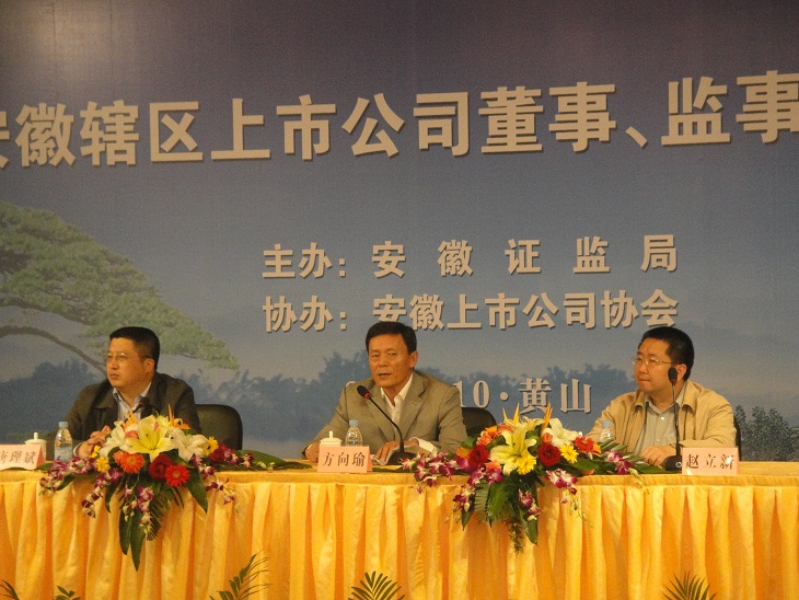 2010年10月16日-17日,由安徽證監(jiān)局主辦、安徽上市公司協會協辦的轄區(qū)2010年度上市公司董、監(jiān)事培訓班在黃山舉辦。中國證監(jiān)會有關領導和專家、深交所及相關中介機構專家,就上市公司監(jiān)管形勢、誠信規(guī)范、內幕交易防控、董監(jiān)事的權利義務及責任、上市公司信息披露、上市公司再融資及并購重組等內容進行了重點講解。