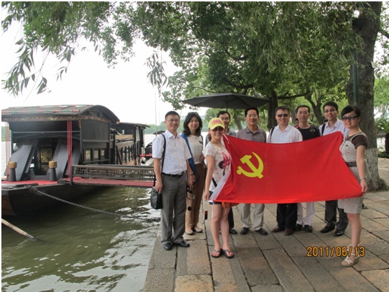 浙江嘉興是考察團(tuán)行程的第一站。六月的嘉興大地,草木蔥蘢,生機(jī)勃勃,悠悠南湖,碧水蕩漾,游人如織。90年前,嘉興南湖發(fā)生了一件中國(guó)歷史上開(kāi)天辟地的大事件——中國(guó)共產(chǎn)黨第一次全國(guó)代表大會(huì)在這里完成了最后的議程,正式宣告成立。考察團(tuán)一行懷著十分崇敬的心情來(lái)到南湖景區(qū),瞻仰南湖紅船,認(rèn)真聽(tīng)取講解,接受深刻的黨史教育,并不時(shí)就有關(guān)問(wèn)題相互展開(kāi)討論。